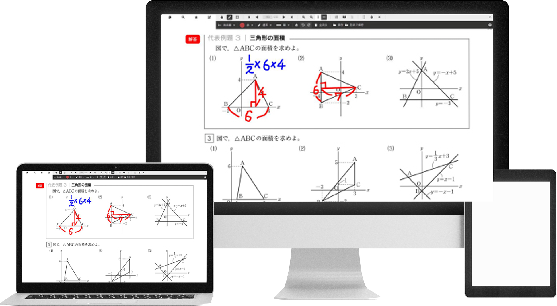 デジタルブックへの書き込みはそのまま教材の一部として活用可能。先生の解説メモ、生徒の回答や考えもそのまま保存され、“書き込んで終わり”ではなく、“積み重ねて深める”学びへとつながります。