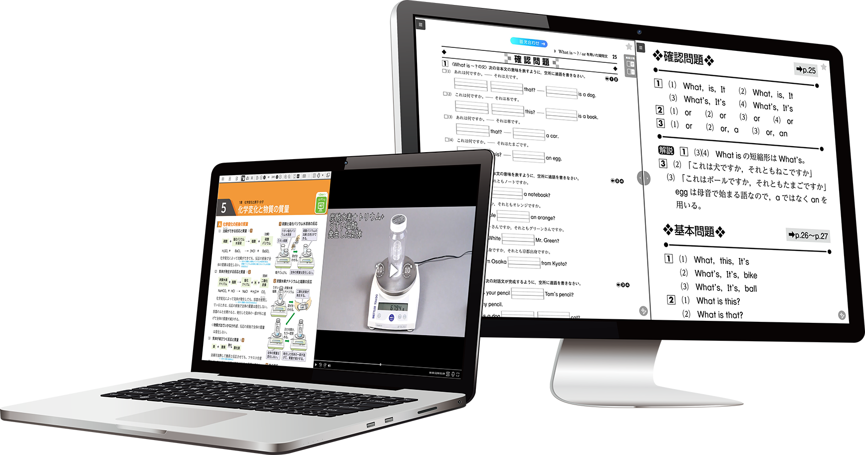 左画面に授業で使うデジタル教科書、右画面に図解サイトや辞書サイトを表示。説明の補足として即座に参考資料を提示でき、生徒の理解度アップに貢献します。
