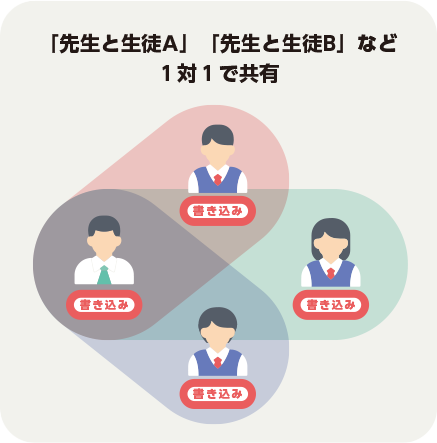 個別共有 … 先生と生徒A、生徒Bなど、1対1の指導に特化した共有も可能